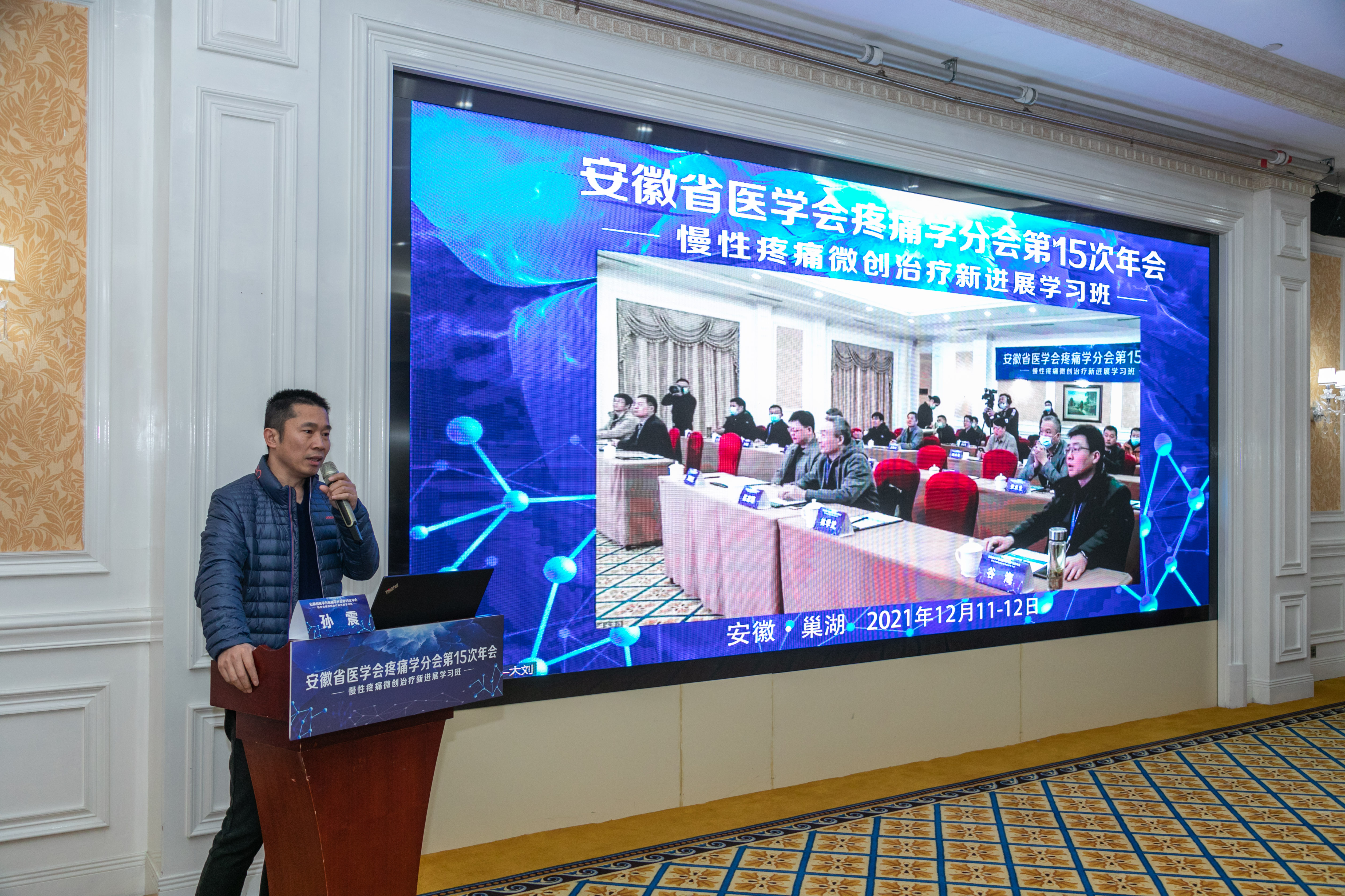 2021年12月10日-12日,由安徽省医学会疼痛学分会主办、安徽医科大学第一附属医院承办、安徽医科大学附属巢湖医院协办的“安徽省医学会疼痛学分会第十五次学术年会暨慢性疼痛微创治疗新进展学习班”顺利召开。中华医学会疼痛学分会主任委员、南昌大学第一附属医院张达颖教授(线上),安徽省医学情报研究所孙震副所长,安徽医科大学附属巢湖医院副院长刘寰忠教授,安徽省医学会疼痛学分会主任委员、安徽医科大学第一附属医院疼痛科王立奎教授参加开幕式并致辞。来自全省疼痛界500余名医护人员和研究人员在线上参加了本次学术年会。